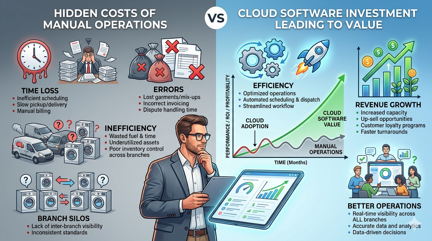Running multiple laundry branches without cloud software is possible. People do it. They just spend enormous time and energy on coordination that should be automatic. The question isn't whether you need this technology—it's whether you want to grow efficiently or stay stuck in operational chaos.