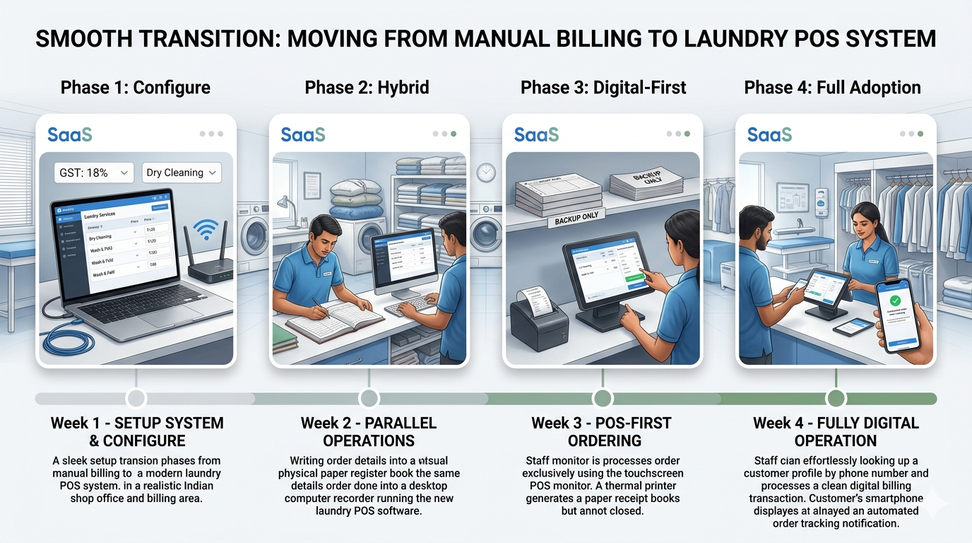 Not really. Most modern systems are designed for non-technical users. If you can use WhatsApp, you can use a laundry POS. Initial setup takes a day or two, and staff training typically needs 2–3 days. After that, daily operations are actually faster than manual billing. The learning curve is much shorter than people expect.